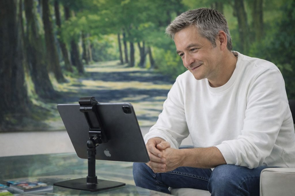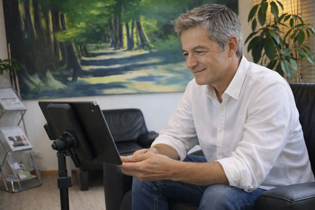 Der Videochat ermöglicht eine stabile therapeutische Beziehung, auch ohne physische Anwesenheit. Mimik, Stimme und Gesprächsdynamik bleiben erhalten. Viele Klienten berichten, dass sie sich im vertrauten Umfeld schneller öffnen können und Gespräche als besonders fokussiert erleben.
